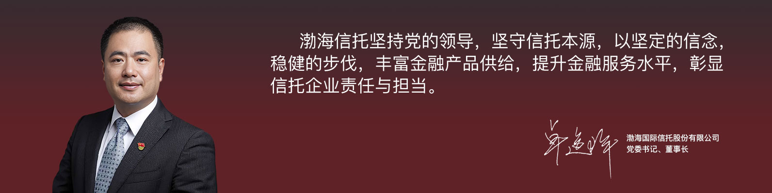 渤海信托緊跟時代步伐,以習近平新時代中國特色社會主義思想為指導,服務實體經濟,防控金融風險,走中國特色金融發展之路。公司將立足“3+1”業務戰略,全力做好科技金融、綠色金融、普惠金融、養老金融、數字金融五篇大文章,努力實現“受人尊敬的信托公司、河北最好的金融機構”的發展愿景,為社會經濟發展貢獻渤海力量。
